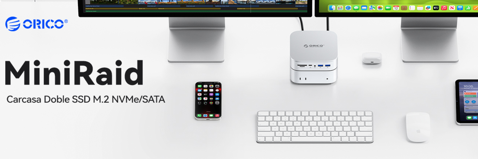 Para los usuarios de Mac Studio, Mac Mini y MacBook Pro, la falta de puertos y el elevado coste de las ampliaciones de almacenamiento interno son obstáculos constantes. El Hub Integral 10 en 1 de ORICO surge como la solución, fusionando un centro de expansión de alto rendimiento con una arquitectura de almacenamiento de doble unidad que transforma cualquier escritorio en una estación de trabajo profesional.