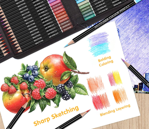 Uno de los aspectos más destacados es la alta calidad de sus pigmentos. Los lápices cuentan con minas suaves, altamente pigmentadas y resistentes a las roturas, lo que garantiza trazos uniformes y una excelente cobertura. Los colores mantienen su intensidad con el paso del tiempo, sin desvanecerse, permitiendo que cada obra conserve su brillo original. La aplicación es fluida y cómoda, facilitando la superposición de capas y la mezcla precisa para lograr resultados profesionales.