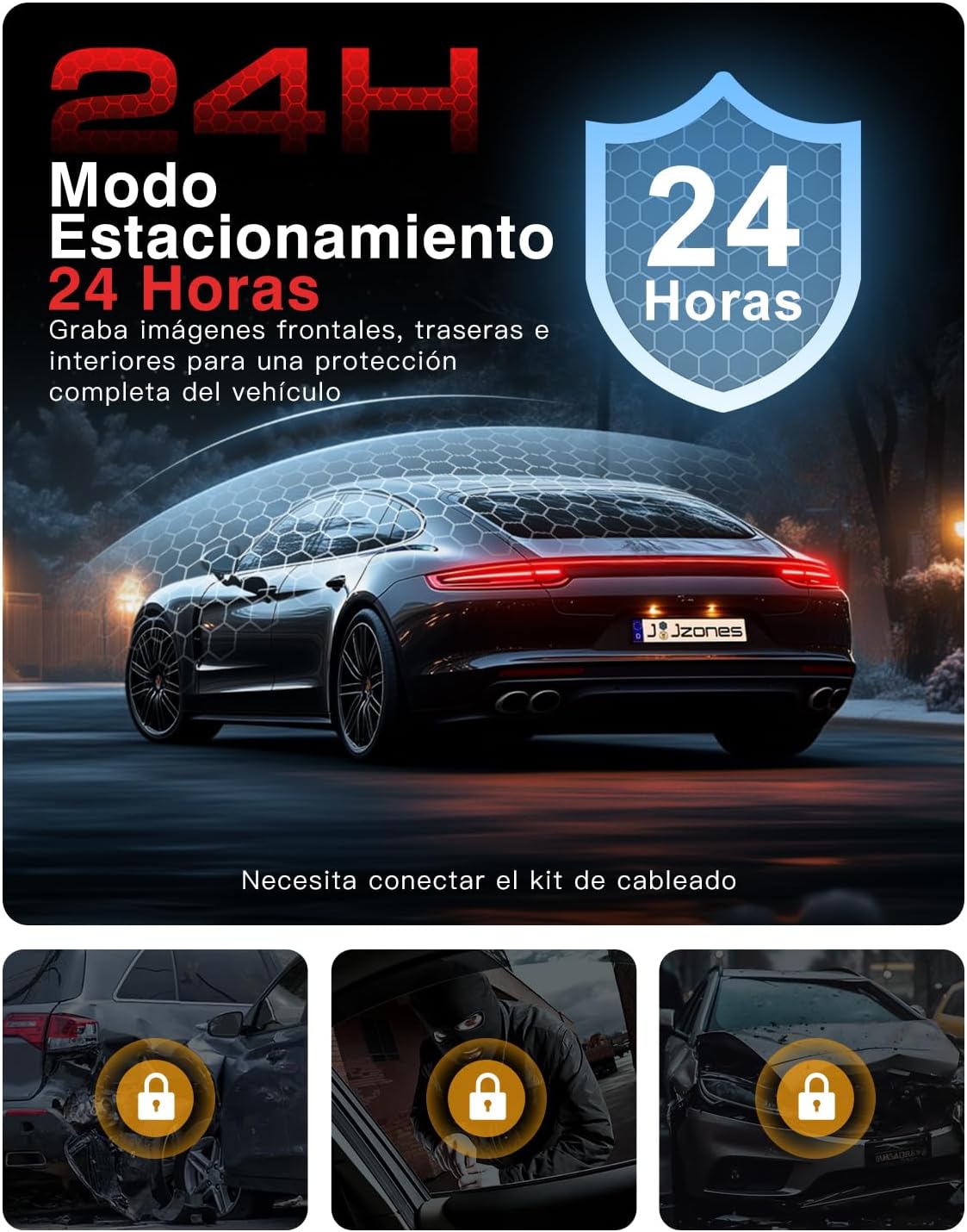 La seguridad no se detiene cuando apagas el motor. Con el modo de monitoreo de estacionamiento las 24 horas (activado mediante un cable especial opcional), el Jzones V630 se mantiene alerta. Si el sensor G detecta una vibración o impacto mientras el coche está aparcado, la cámara se activa para grabar el incidente, ofreciendo tranquilidad absoluta mientras el vehículo está desatendido.