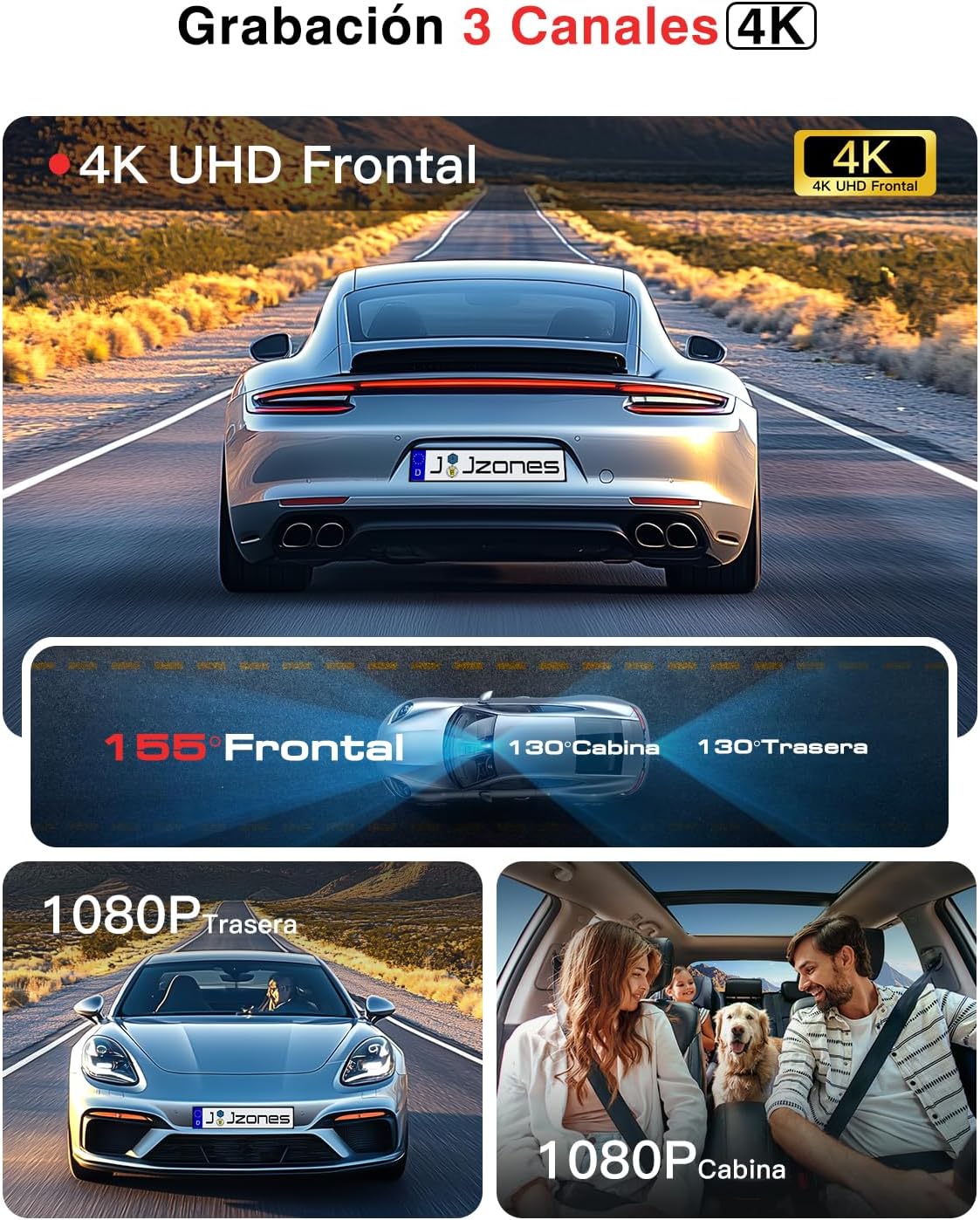 En un entorno de conducción cada vez más impredecible, contar con un testigo ocular de alta fidelidad es una necesidad. La Jzones V630 es una de las cámaras para salpicadero más avanzadas, ofreciendo un sistema de triple canal que garantiza una cobertura total, tanto de lo que sucede frente al volante como en el interior y la parte trasera del vehículo. Mientras que la cámara frontal captura la carretera en una resolución 4K impresionante, los sensores interiores y traseros complementan la vigilancia con calidad HD 1080P. Esta combinación no solo sirve para registrar paisajes, sino para identificar detalles críticos como matrículas y rostros a gran distancia.
