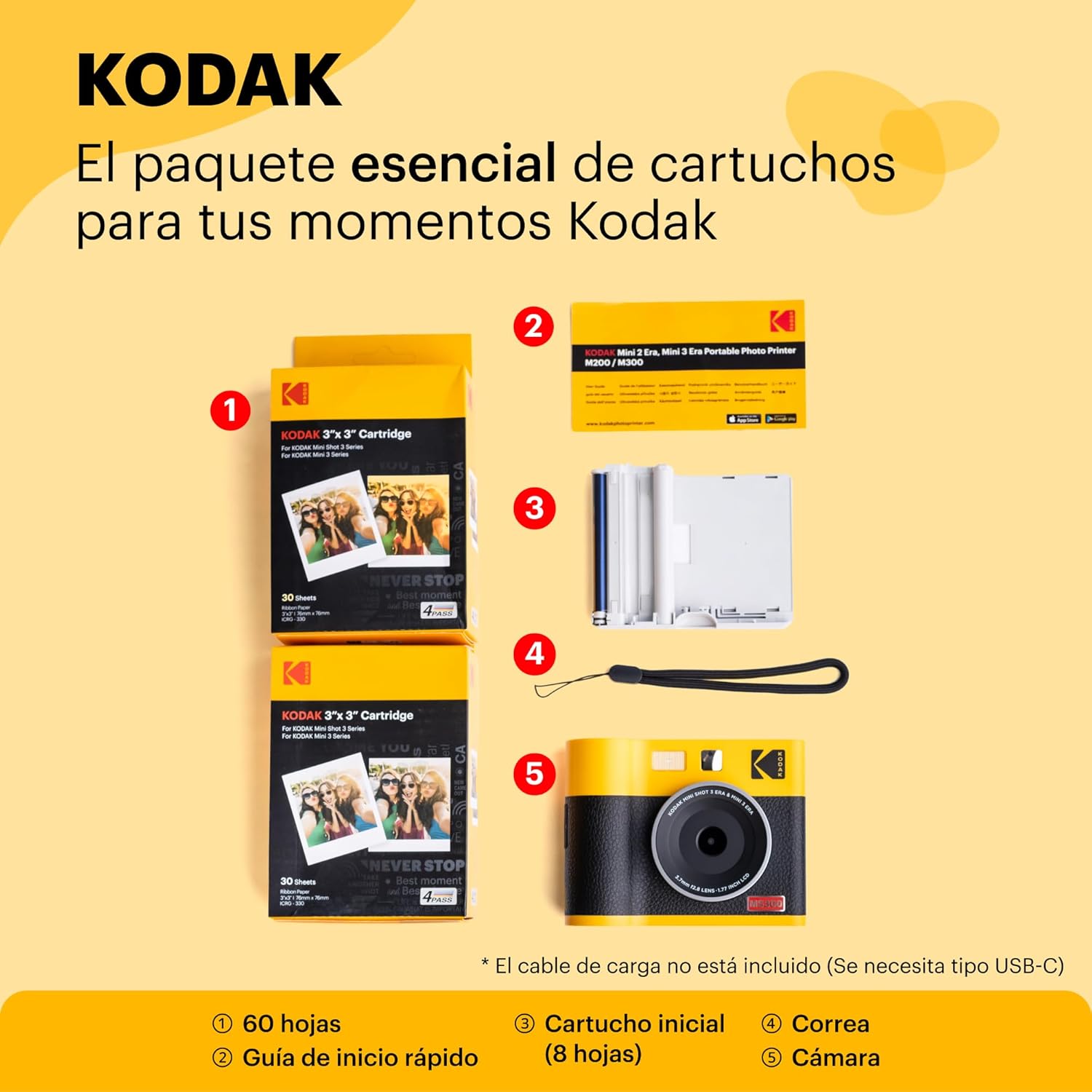 Kodak Mini Shot 3 Era 4Pass 2-en-1 Cámara Instantánea e Impresora de Fotos Bluetooth (Cámara + Pack con 68 Hojas) por 99,99€ antes 122,54€.