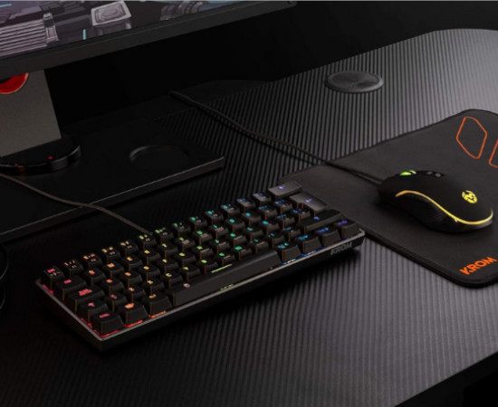 El Krom Kluster se presenta en un formato 60%, lo que significa que prescinde de todo lo innecesario (como el teclado numérico o las teclas de función dedicadas) para concentrar toda la funcionalidad en un cuerpo ultra-compacto. Esta reducción de tamaño no es solo estética; tiene un impacto directo en tu ergonomía. Al ocupar menos espacio, permite que tus hombros estén en una posición más natural y que el ratón tenga un área de movimiento mucho más amplia, algo vital en juegos de alta sensibilidad o shooters competitivos.
