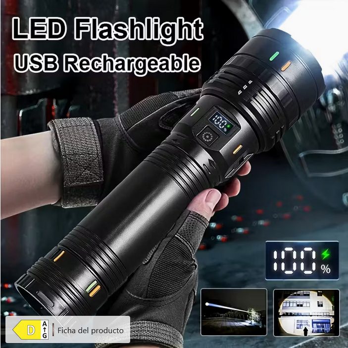 Además, la linterna recargable Huukers incorpora un indicador digital de batería, una función que aporta tranquilidad y control. Gracias a su pantalla integrada, el usuario puede conocer en todo momento el nivel de carga disponible, evitando sorpresas desagradables y planificando mejor su uso. Esta característica resulta especialmente útil en salidas largas o situaciones de emergencia, donde la autonomía es clave.