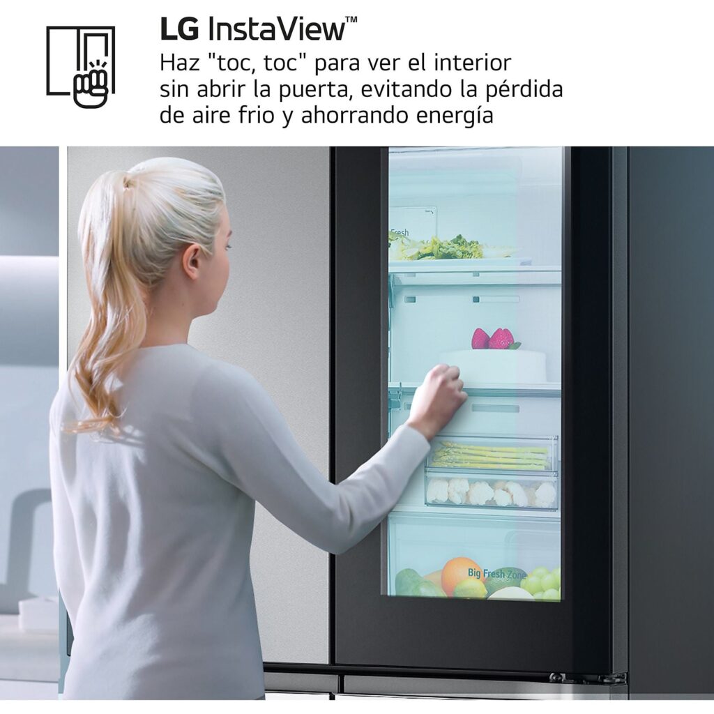La tecnología ThinQ con conectividad Wi-Fi permite gestionar el LG GMV960MBDE de forma remota desde un smartphone. Ya sea para ajustar la temperatura antes de llegar a casa con la compra o para recibir alertas de diagnóstico, el control es total y sencillo. Además, este modelo incluye la tecnología InstaView, que permite ver el interior con solo dos toques en el cristal, evitando la pérdida de frío innecesaria. Su sistema de agua y hielo funciona sin toma de agua, lo que facilita enormemente su instalación en cualquier rincón de la cocina sin necesidad de obras de fontanería.Especificaciones Técnicas Destacadas