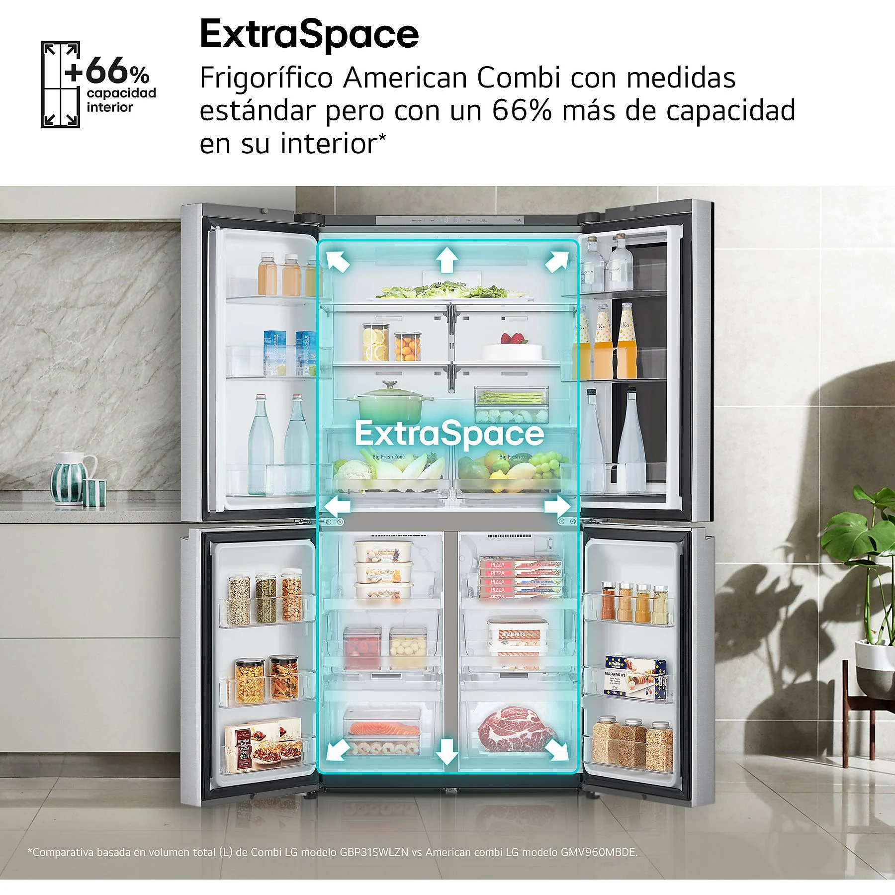 Este frigorífico no solo destaca por su gran capacidad de 666 litros, sino por integrar tecnologías de aprendizaje profundo que adaptan el funcionamiento del aparato al ritmo de vida de cada hogar. Con su acabado en acero antihuellas texturizado y un diseño de puerta plana, ofrece una integración minimalista que eleva el nivel de cualquier cocina moderna.