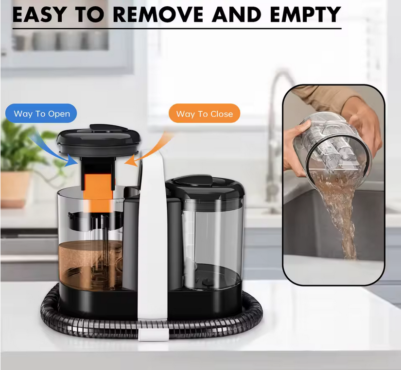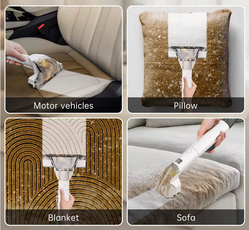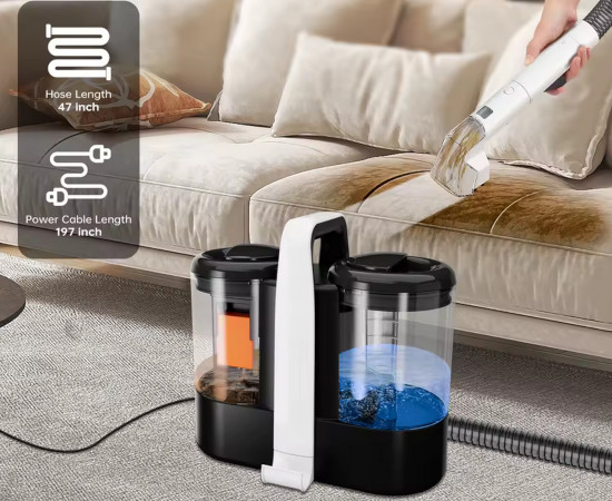 Omeser W07 transforma la limpieza de tu hogar en una experiencia profesional y sin complicaciones. Imagina esa mancha de vino tinto que parece integrarse en la alfombra o el charco de orina que tus mascotas dejan sin avisar: con una potente succión de 15 KPa, este equipo no solo extrae líquidos, sino que arranca la suciedad incrustada a ras de fibra, devolviendo a tapetes, sofás y tejidos el aspecto y la suavidad originales.La clave de su eficacia reside en su sistema 3 en 1, que combina pulverización, cepillado y aspiración en un único flujo de trabajo. Primero, una bruma fina de solución limpiadora impregna la superficie, aflojando manchas y desechos. A continuación, un cabezal giratorio masajea las fibras, levantando partículas y eliminando residuos adheridos. Finalmente, la fuerza de vaciado se encarga de absorber la mezcla de agua y suciedad, dejando el material casi seco al instante.