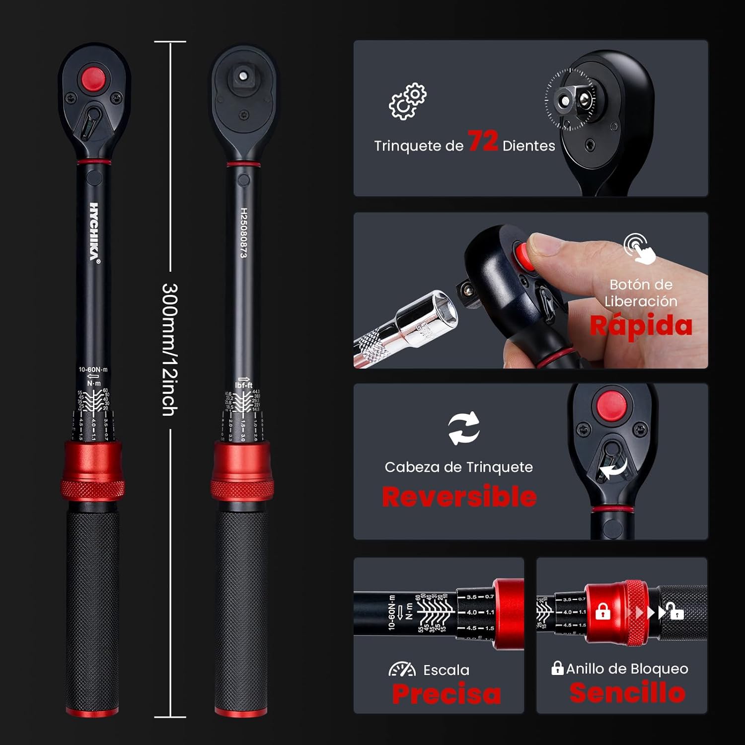Diseñada para ofrecer un control exacto del par de apriete, esta llave destaca por su precisión del ±2%, un valor que supera ampliamente el estándar habitual del ±3% presente en muchas herramientas del mercado. Su rango de trabajo, que abarca desde 10 hasta 60 N·m (equivalente a 3.69–18.45 lbf·ft), la convierte en una opción versátil para tareas en automóviles, motocicletas, bicicletas y proyectos de mantenimiento general. Además, cada unidad incluye un informe de calibración independiente, lo que garantiza trazabilidad y confianza en cada ajuste realizado.