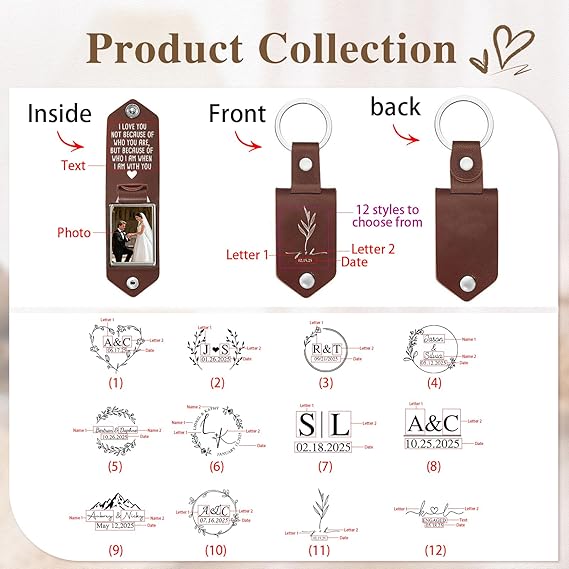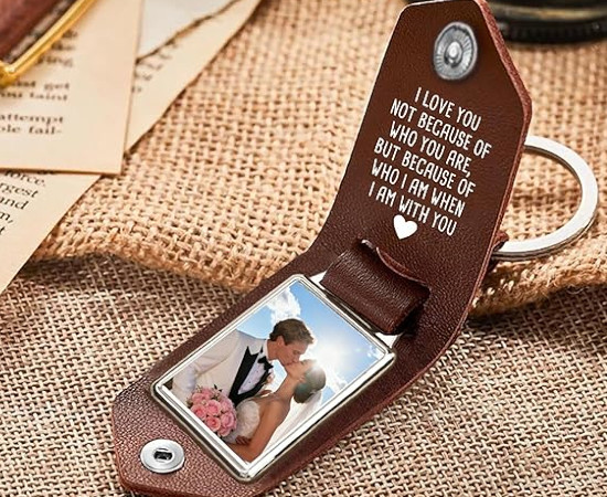 El encanto de este llavero personalizado reside en su capacidad para convertirse en un detalle único. Está diseñado para parejas, familiares o amigos que desean llevar consigo un recuerdo íntimo y permanente. Su estructura permite grabar nombres, fechas importantes o mensajes especiales, tanto en la cubierta exterior como en el panel interior. Al abrirlo, aparece una ranura para fotos personalizada, un pequeño espacio donde puedes guardar una imagen significativa: una fotografía de pareja, un retrato familiar, la imagen de un hijo, una mascota o cualquier recuerdo que quieras tener siempre cerca. Esta combinación de grabado y fotografía convierte el llavero en un objeto profundamente personal, ideal para regalar en aniversarios, cumpleaños, San Valentín o como detalle espontáneo cargado de cariño.