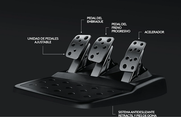 La experiencia se completa con una unidad de pedales independiente, que incluye acelerador, freno y embrague. Estos pedales ajustables permiten adoptar una posición natural y cómoda, replicando la sensación de estar dentro de un coche de verdad. Cambiar de marcha, frenar con precisión o acelerar con fuerza se convierte en un gesto instintivo, lo que eleva la simulación a un nivel profesional.