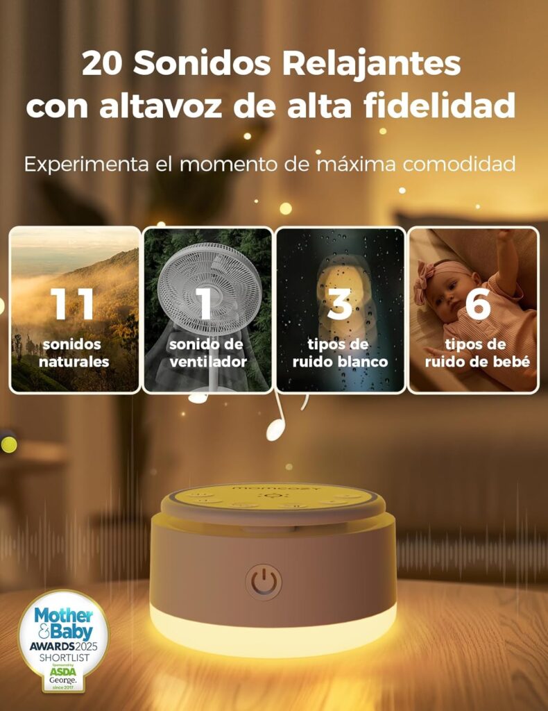Oferta de primavera, luz de noche con sonidos relajantes y ruido blanco Momcozy por 25,49€.