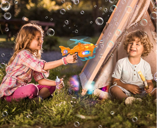 Las pompas de jabón siempre suponen un entretenimiento para los niños y son una forma divertida de compartir momentos divertidos en espacios abiertos. Con esto pasa como con muchas otras cosas: cuantas más pompas hay en el aire mejor, pero con un pompero tradicional esto no es tarea fácil, así que hay algunas máquinas capaces de hacerlas en gran cantidad al estar provistas de un pequeño compresor. Ya hemos visto algunas en anteriores ocasiones, pero el juguete que traemos hoy es una pistola con forma de helicóptero que solo «disparará» burbujas si el niño aprieta el correspondiente gatillo. También mueve su hélice, tiene luces led y una musiquilla que nos tememos no hay forma de desactivar pero seguro que gusta a los pequeños. Viene con dos botellitas de líquido para pompas, y es que ahora resulta que todos los jueguetes de este tipo solo hacen las pompas de forma efectiva si se compra un liquido con la proporción correcta de jabón (se supone que si sabes la fórmula secreta puedes usar tu propio jabón, pero casi mejor comprar estos líquidos porque nuestro jabón casero puede estropear estos juguetes y tampoco son muy caros; es más la molestia de comprarlas). Este juguete con forma de helicóptero dispara pompas cuesta en Amazon 19,99€ pero aplicando el código 6MZ858EW se queda por tan solo 9,99€.