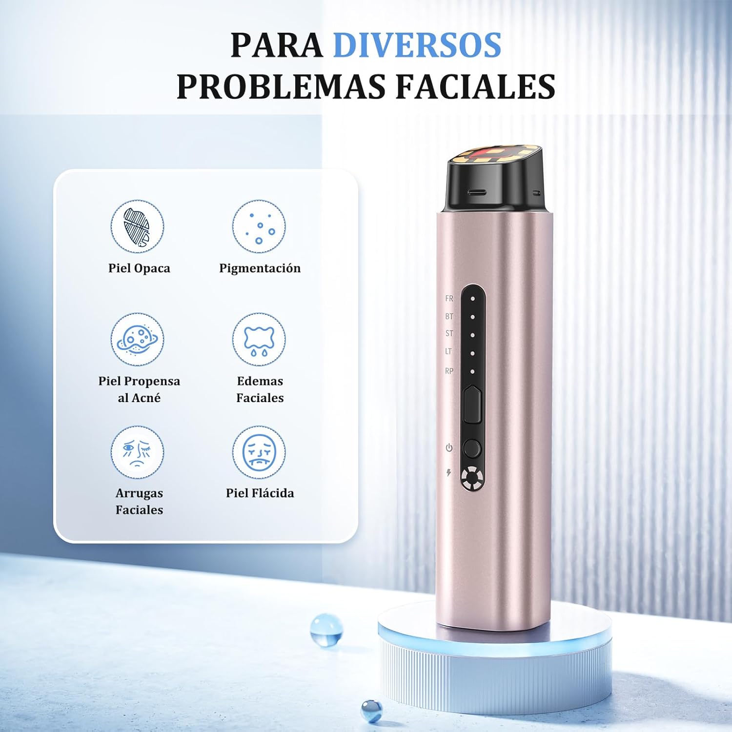 • Modo BT (Iluminación): Utiliza tecnología de temperatura constante para unificar el tono y devolver el brillo natural a pieles opacas.