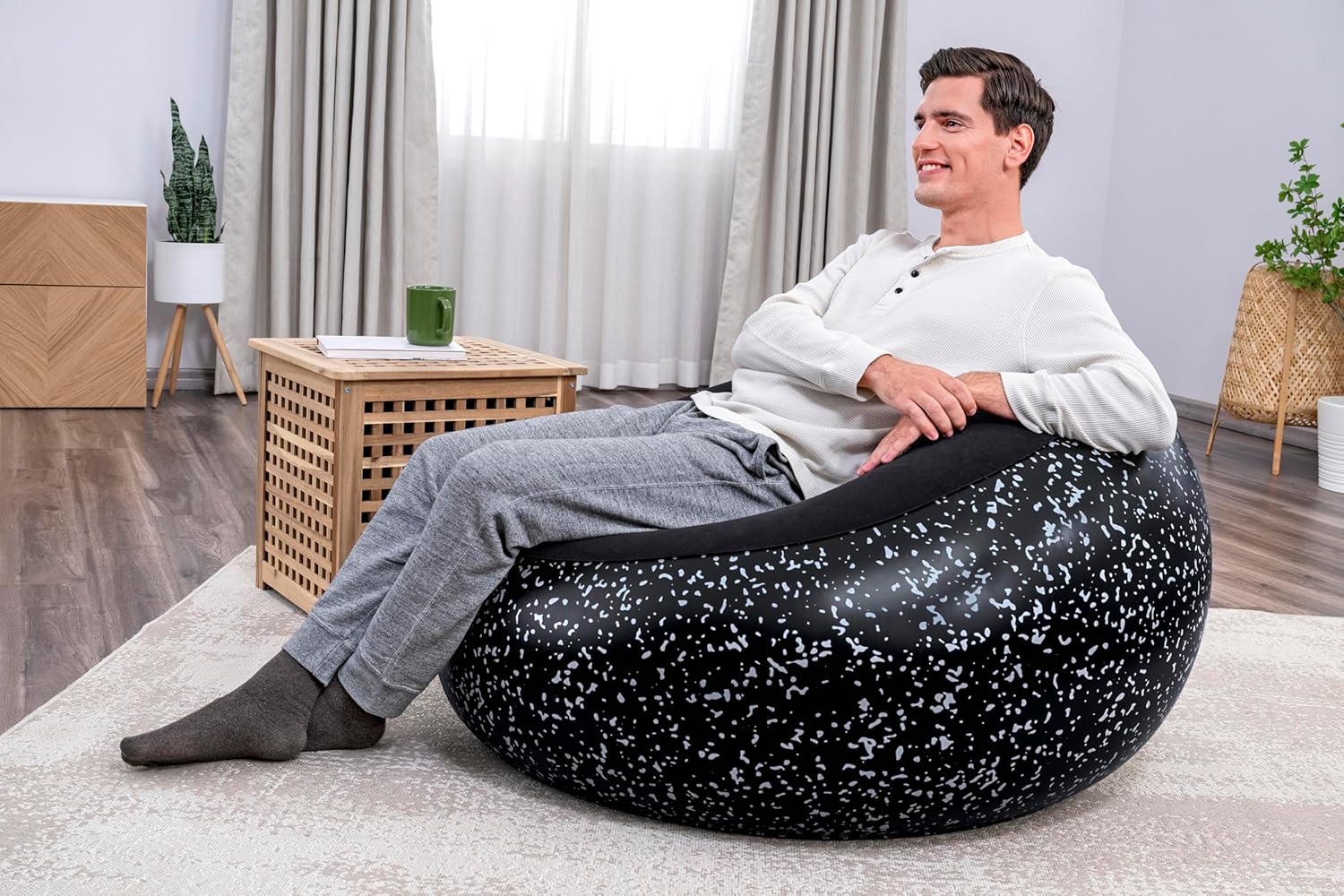 Contar con soluciones de mobiliario adaptables a distintos entornos siempre viene bien. Esta silla de Aire Inflate-A-Chair de Bestway es un refugio de relax que puedes desplegar o guardar en cuestión de minutos. Con unas generosas dimensiones de 112 x 112 x 66 cm, este sillón hinchable combina la ergonomía de un puff tradicional con la tecnología avanzada de los materiales inflables de alta resistencia.  Gracias a su fabricación con materiales de alta calidad, este sillón es el compañero ideal tanto para el salón de casa como para disfrutar de una tarde de sol en el jardín o la terraza. Su superficie flocada aporta un tacto aterciopelado extremadamente agradable, eliminando esa sensación plástica de los inflables convencionales y garantizando una experiencia de uso fresca y acogedora.