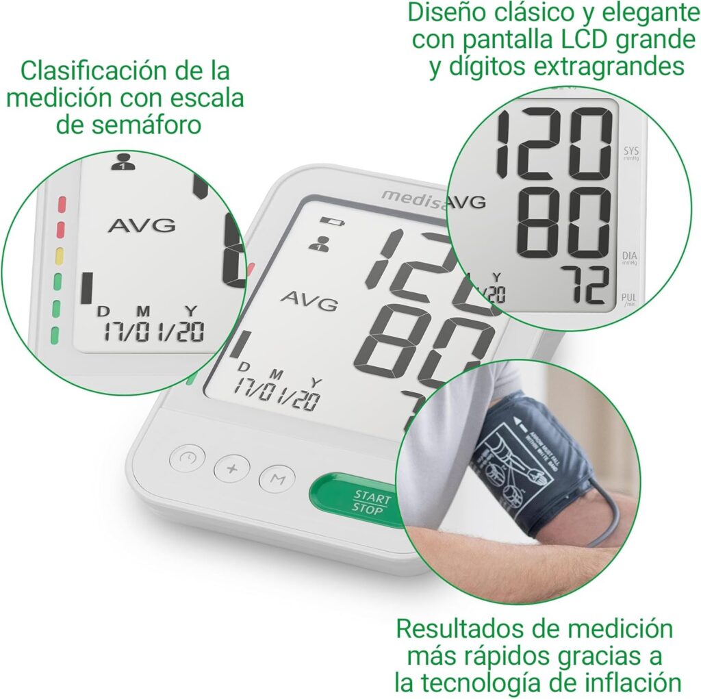 Uno de los mayores retos al medir la presión arterial en casa es la interpretación de los datos. El Medisana BU 586 soluciona esto mediante su intuitiva escala de colores tipo semáforo. Basada en los estándares de la Organización Mundial de la Salud (OMS), esta función clasifica los resultados al instante: verde para niveles óptimos, amarillo para valores normales-altos y rojo para indicar hipertensión. Además de la presión sistólica y diastólica, el dispositivo realiza una medición simultánea del pulso, ofreciendo una visión integral del estado hemodinámico del usuario en cada toma.