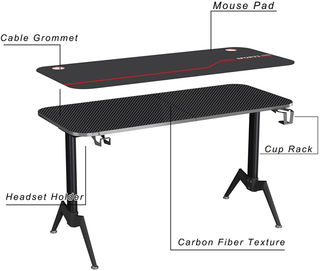 Mesa de gaming 140x60x75cm, extructura de acero por 104,99€.