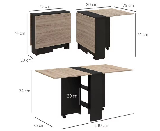 A diferencia de las mesas plegables convencionales que suelen ser inestables, el modelo de Homcom está fabricado en melamina de madera de alta densidad. Este material no solo garantiza una estructura robusta capaz de soportar hasta 20 kg, sino que su superficie laminada ofrece una alta resistencia al uso diario y una limpieza sumamente sencilla, algo vital en entornos de cocina donde los derrames son inevitables.