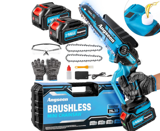 La confianza en la calidad del producto se refleja en la garantía de un año ofrecida por Angseen. Además, el paquete incluye todo lo necesario para comenzar a trabajar de inmediato: la mini motosierra con batería, dos baterías de 4000mAh, dos cadenas (una ya instalada), un cargador, guantes, gafas protectoras, una botella de aceite vacía, un cepillo de limpieza, un estuche portátil y un manual de usuario detallado.