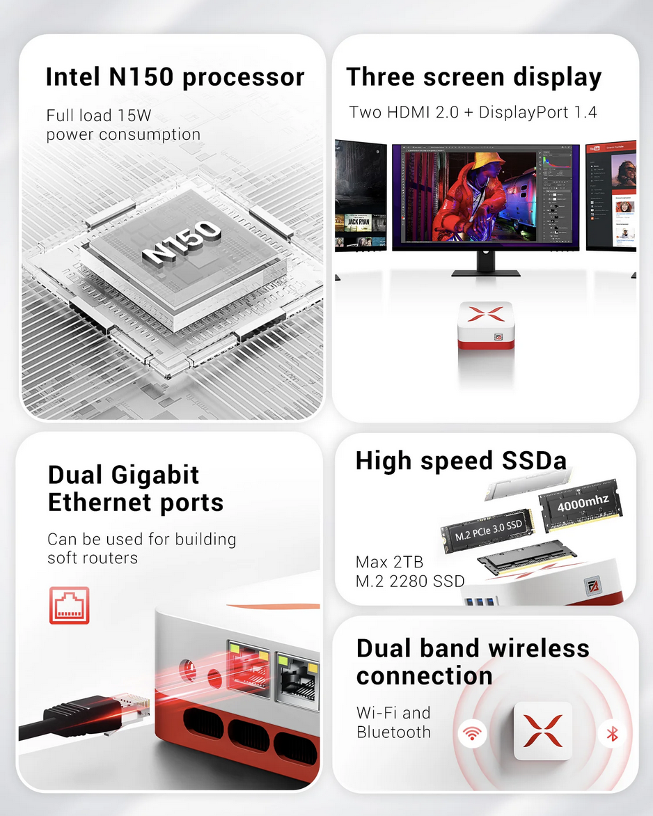 Un mini ordenador personal equilibrado, pensado para usuarios que buscan eficiencia, tamaño reducido y buen rendimiento para tareas cotidianas y multimedia. Su combinación de procesador Intel N150, 12 GB de RAM DDR5 y SSD de 512 GB lo convierten en una opción sólida dentro de su categoría, especialmente para oficinas, estudios, estudiantes o como PC de uso doméstico.