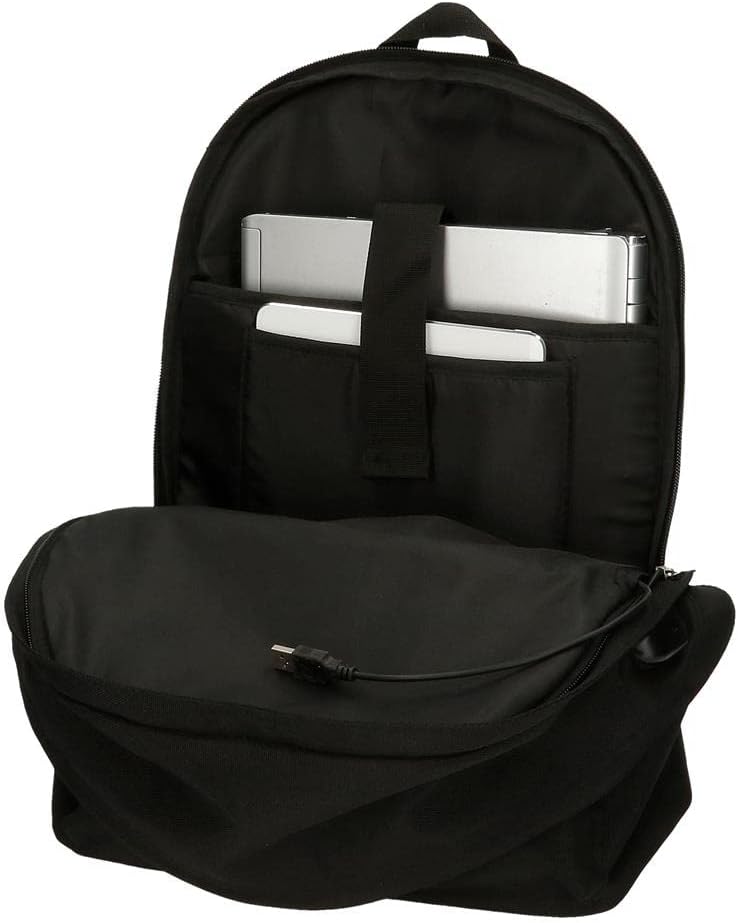 La capacidad de la mochila ronda los 23 a 24 litros, con unas dimensiones aproximadas de 31 × 44 × 17,5 cm, lo que le permite ofrecer un amplio espacio interior sin resultar voluminosa. En su compartimento principal se pueden guardar libros, carpetas y objetos personales, mientras que el bolsillo interior acolchado está diseñado para proteger ordenadores portátiles de hasta 15,6 pulgadas. Además, incluye un bolsillo frontal para accesorios y objetos pequeños, práctico para tener todo a mano.