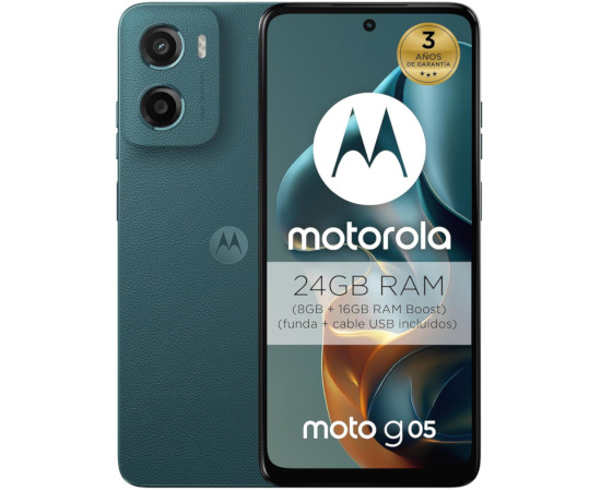 Bajo el capó, el Moto G05 integra conectividad 5G y Bluetooth de última generación, garantizando descargas rápidas, videollamadas estables y sincronización instantánea con tus dispositivos. La arquitectura interna se sustenta en un motor de rendimiento ultraeficiente: gracias al sistema RAM Boost, puedes disponer hasta de 24 GB de memoria —combinando 8 GB físicos y un generoso espacio virtual— sin que la autonomía se resienta. Navegar entre aplicaciones, editar fotografías en alta resolución o alternar entre pestañas del navegador se convierte en una acción instantánea, sin los habituales tirones que frenan la creatividad y el ritmo laboral.