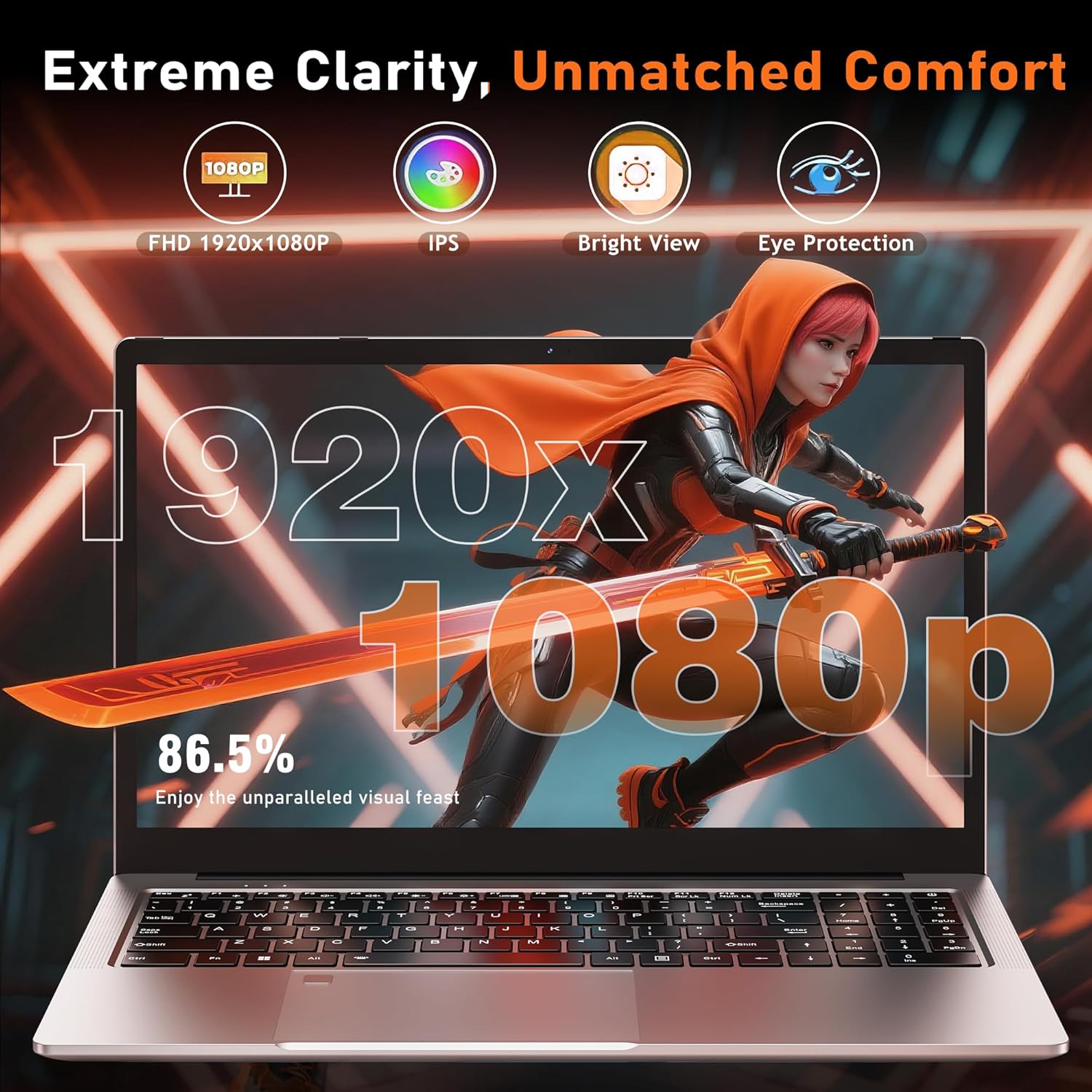 • Escritura Adaptable: Teclado retroiluminado ergonómico con dos niveles de brillo.