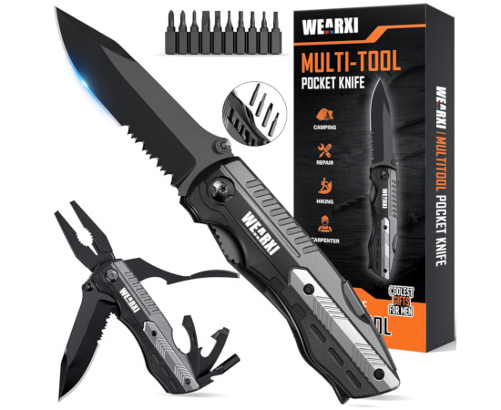 Su diseño inteligente integra hasta 13 funciones diferentes en un formato compacto y ligero. Entre ellas se incluyen un cuchillo dentado de gran precisión, alicates de punta fina, cortadores de alambre, alicates normales, abridor de botellas, abrelatas, destornillador de punta plana y un juego de 10 puntas de destornillador intercambiables. Esta variedad de herramientas convierte a la navaja WEARXI en un auténtico centro de soluciones portátiles, capaz de responder a las necesidades más diversas, desde abrir una botella durante una excursión hasta realizar pequeñas reparaciones en casa.La portabilidad es uno de sus grandes atributos. Con una longitud total de 7,7 pulgadas y apenas 4,3 pulgadas cuando está cerrada, además de un peso de solo 0,48 libras, la navaja resulta compacta y fácil de transportar. Su diseño plegable, acompañado de una funda de nailon resistente, permite guardarla en mochilas, bolsillos o cinturones sin ocupar espacio innecesario. Además, el sistema de bloqueo de revestimiento evita la entrada de suciedad y garantiza que la herramienta no se cierre accidentalmente, ofreciendo seguridad adicional durante su uso.