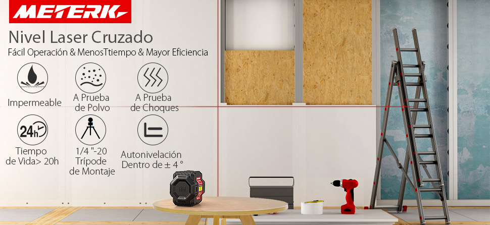Nivel de láser cruzado autonivelante Meterk 15M, impermeable, montaje en trípode o base magnética por 17,99€ antes 29,99€.