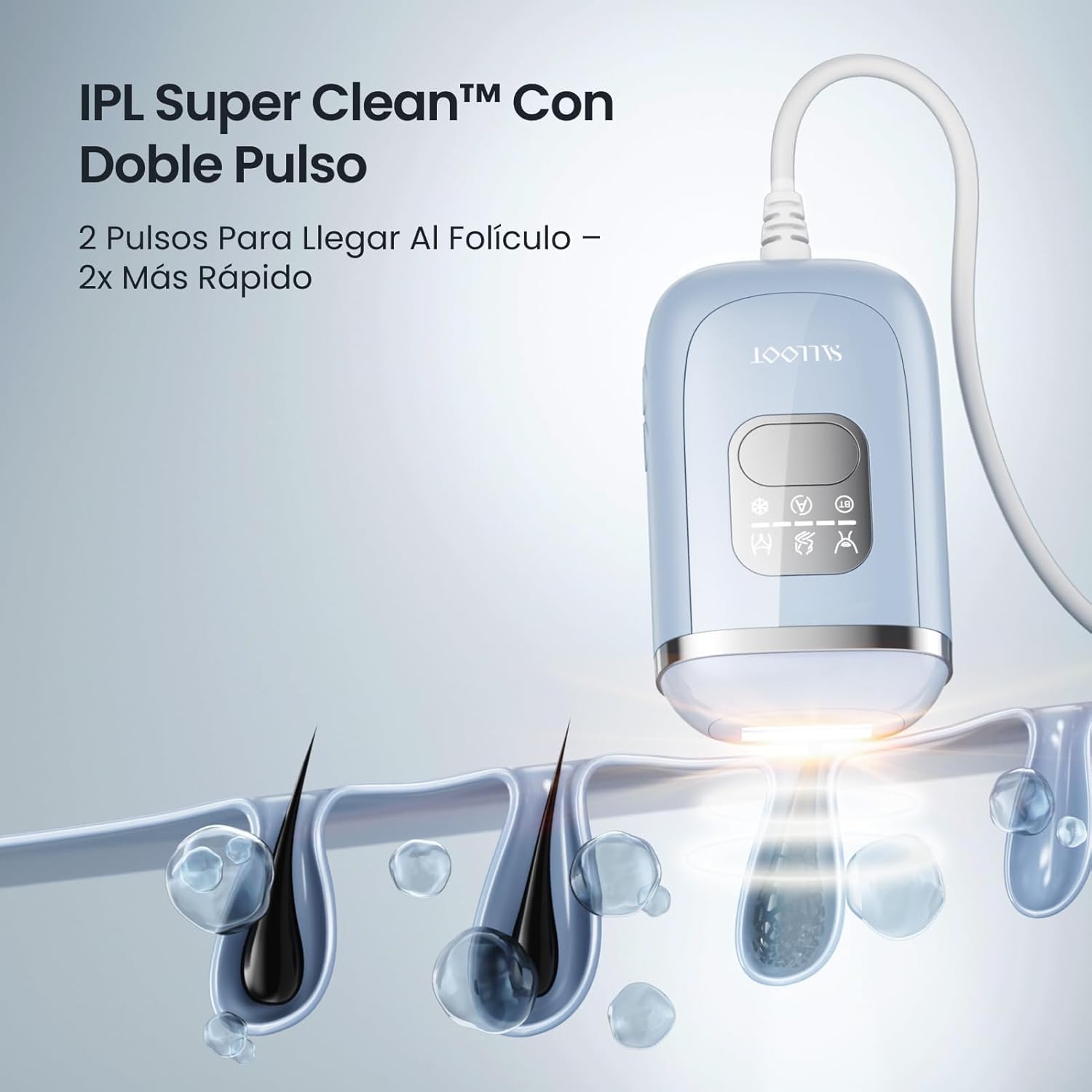 La Nova P5 utiliza pulsos duales Super Clean que penetran profundamente en el folículo piloso, atacando la raíz del vello para impedir su crecimiento. Gracias a esta tecnología, se logra hasta un 93% de reducción del vello en tan solo cuatro semanas, un resultado que la convierte en una de las depiladoras más eficaces del mercado. Su adaptador incorporado de 78W y la energía de 22J garantizan la eliminación del vello más rebelde en zonas complicadas como axilas e ingles, revelando una piel suave y lista para lucirse en cualquier temporada, especialmente en verano.