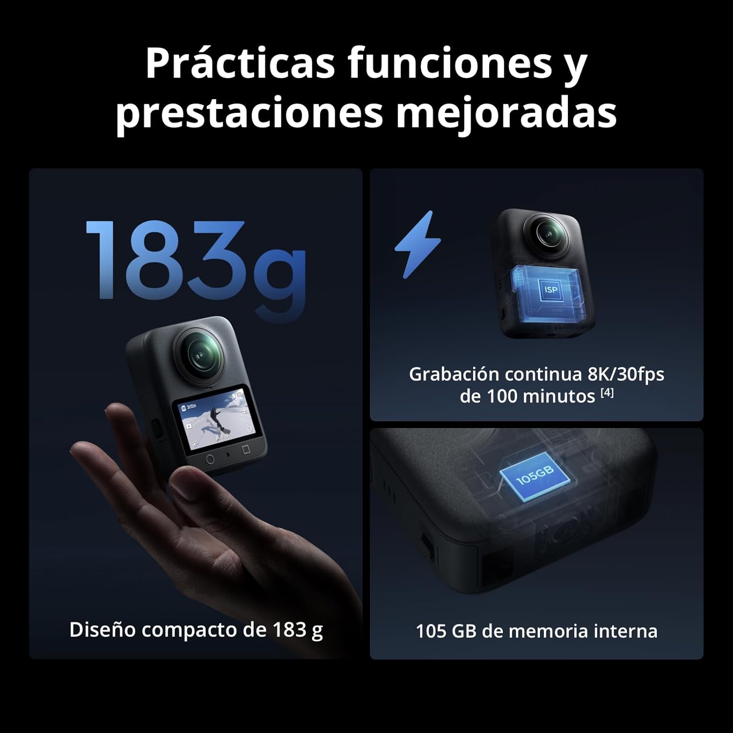 Para los amantes de la acción, la Osmo 360 ofrece vídeos súper fluidos en 4K/120 fps y un campo de visión ultraamplio de 170°. Esta característica es perfecta para deportes extremos, viajes o cualquier situación donde los movimientos rápidos y las escenas dinámicas sean protagonistas. La posibilidad de revivir cada instante con una claridad asombrosa y en cámara lenta añade un valor único a las grabaciones, permitiendo capturar emociones que normalmente pasarían desapercibidas.