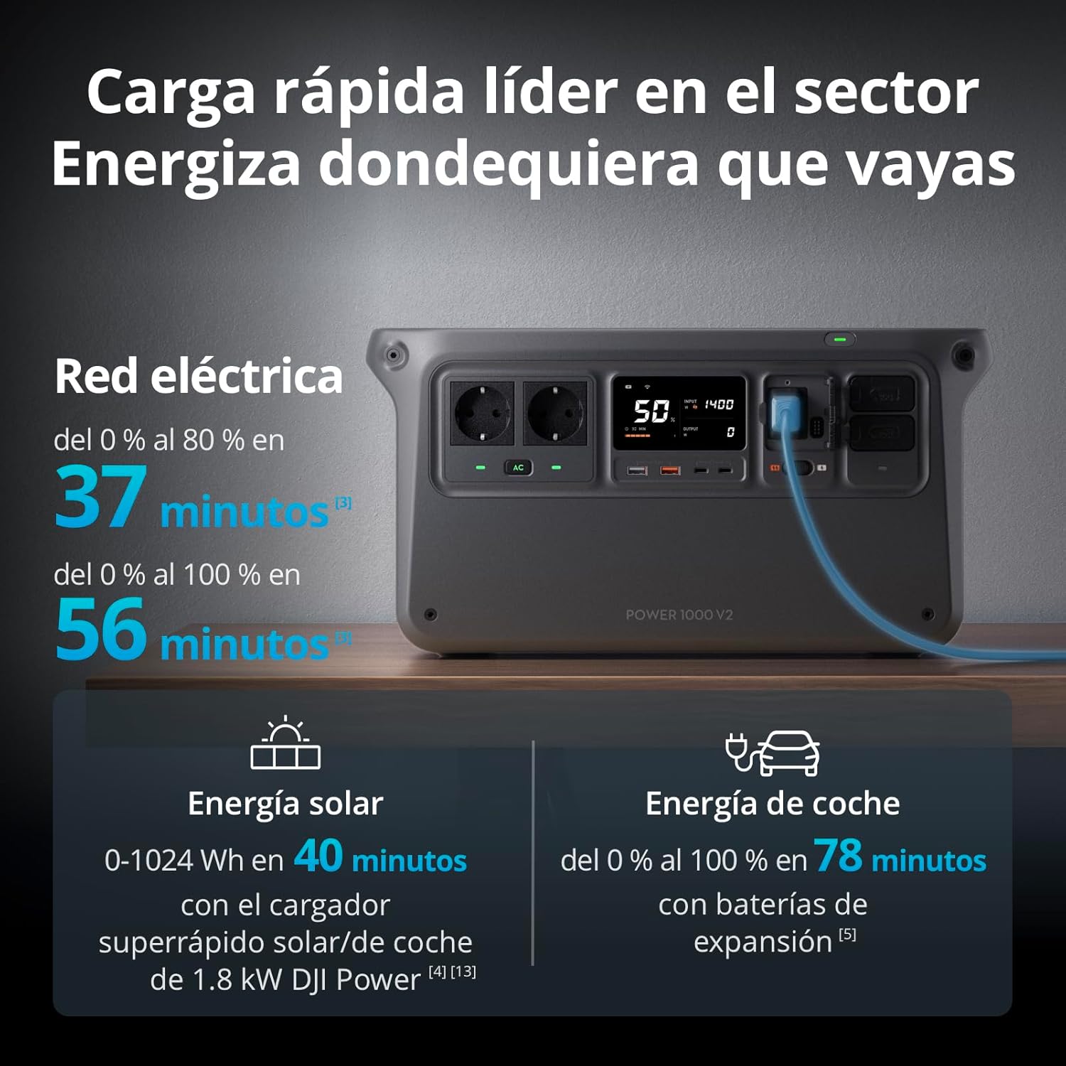 La seguridad también ha sido una prioridad en su diseño. Equipado con una batería LFP de 1024 Wh, un sistema de gestión inteligente (BMS) y una carcasa ignífuga, el DJI Power 1000 V2 garantiza un funcionamiento estable incluso en condiciones adversas. Su vida útil estimada de 10 años lo convierte en una inversión duradera, pensada para acompañarte en múltiples escenarios sin comprometer la fiabilidad.