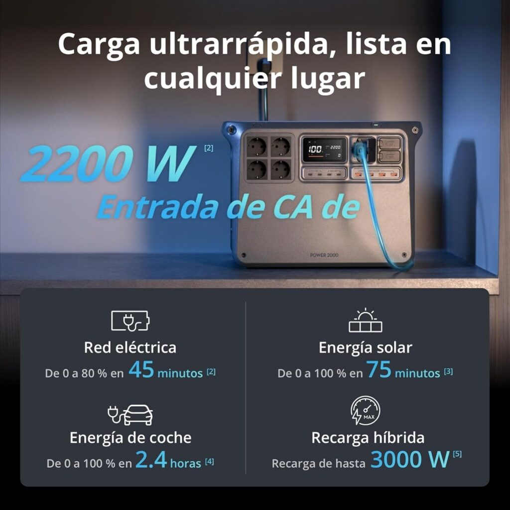 Uno de los aspectos más destacados del DJI Power 2000 es su carga rápida. La estación alcanza el 80 % de su capacidad en apenas 45 minutos, lo que significa que siempre estarás listo para tus viajes por carretera, escapadas de camping o para afrontar emergencias en el hogar sin largas esperas. Esta eficiencia lo posiciona como una solución práctica para quienes necesitan energía inmediata y no pueden permitirse tiempos muertos.El DJI Power 2000 incorpora una batería LFP de 2048 Wh, un sistema de gestión inteligente (BMS), recubrimiento sub-nano y carcasa ignífuga. Todo ello garantiza un funcionamiento estable incluso en condiciones adversas, como humedad o temperaturas extremas. Con una vida útil prolongada y un diseño pensado para resistir entornos exigentes, este generador ofrece tranquilidad en cualquier escenario.