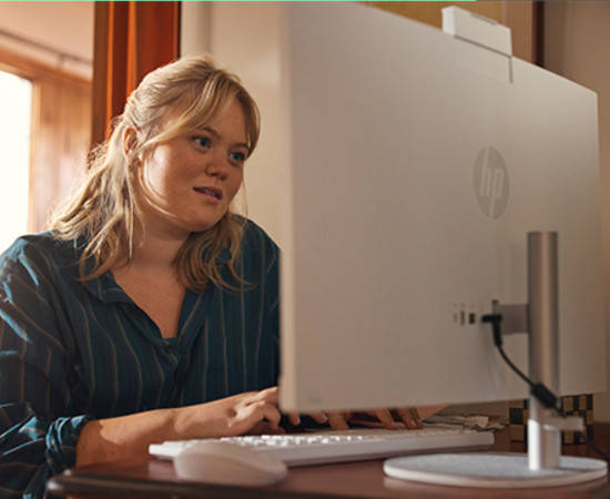 La comodidad también se refleja en los accesorios incluidos. El teclado y ratón inalámbricos HP 510SP en color blanco aportan una experiencia sin cables, manteniendo el escritorio ordenado y elegante.