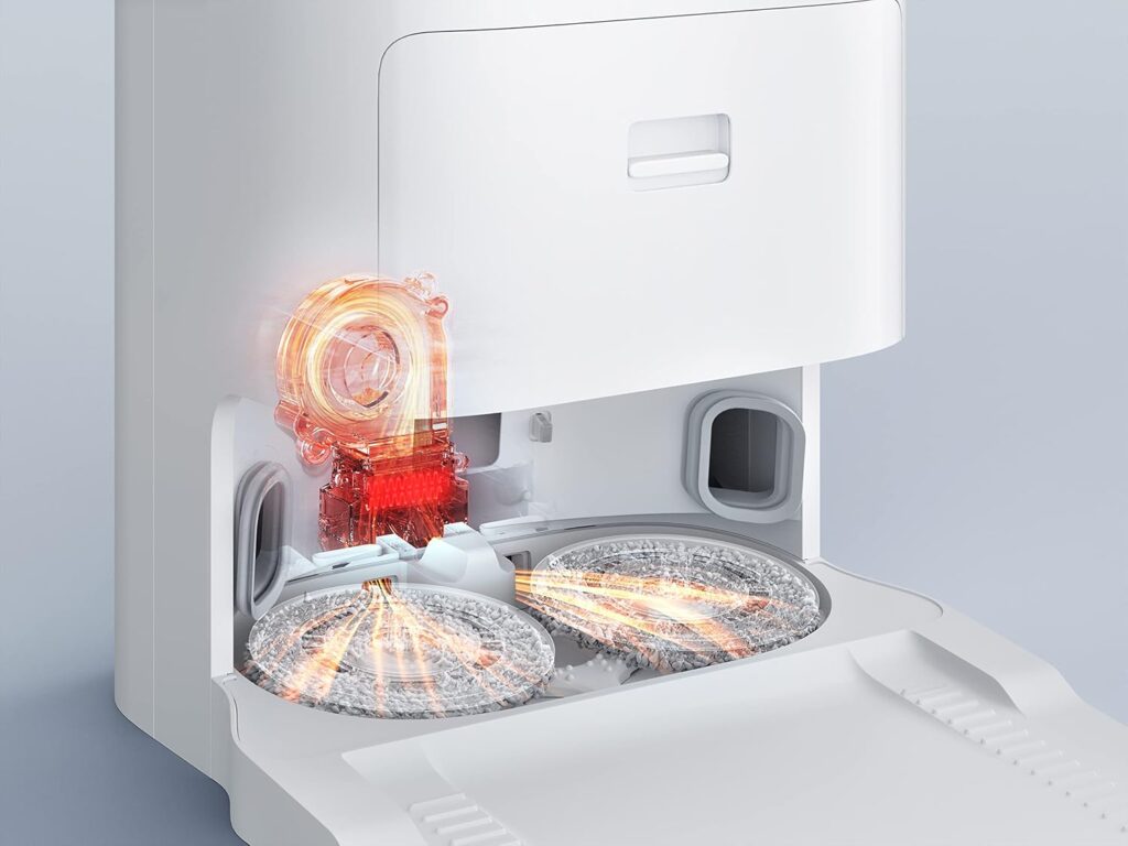 Uno de los aspectos más destacados es su función de fregado con doble mopa giratoria, capaz de alcanzar una velocidad de 180 rpm. Este sistema elimina manchas difíciles y suciedad incrustada, garantizando una limpieza profunda en suelos duros, parquet y superficies delicadas. Gracias a su elevación automática de mopas y a la distribución inteligente de agua, el robot adapta la intensidad de fregado según las necesidades de cada espacio. Además, cuenta con tres niveles de ajuste de agua y un sistema de secado automático con aire caliente, que evita restos de humedad y asegura mopas higiénicas listas para el siguiente uso.La estación de autovaciado multifunción es otro de los grandes avances del Xiaomi Vacuum X10 Plus. Esta base todo en uno no solo vacía automáticamente el polvo en una bolsa higiénica, sino que también lava y seca las mopas y rellena el depósito de agua. Con este sistema, el mantenimiento se reduce al mínimo, permitiendo semanas de limpieza sin intervención manual. La recogida de polvo es configurable y de alta potencia, adaptándose a las preferencias de cada usuario.