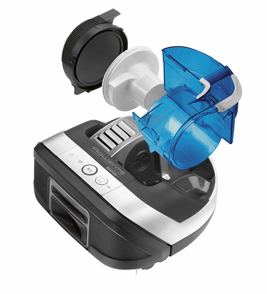 El Rowenta Force Cyclonyc de entrada no se parece a ninguno de sus competidores de mercado y es que, se trata de un aparato de alto rendimiento con aspiración ciclónica, algo que solo habíamos visto hasta ahora en escobas aspiradoras. Como a fin de cuenta no deja de ser un robot, dispone de navegación inteligente para el barrido de todo tipo de superficies, incluidas las alfombras. Cuenta con una cámara láser robart para guiarlo durante dicha navegación, también dispone de otros tres sensores auxiliares que en conjunto l permiten esquivar todo tipo de obstáculos o caer por desniveles. Cuenta con su aplicación para smartphones y tablets que nos permite configurarlo en función de nuestras necesidades: su memoria nos permite establecer hasta siete programas diferentes a la semana, es decir uno por día. Para funcionar integra una batería recargable con una autonomía de una hora tras un ciclo de carga completo de 3. El robot dispone de un sistema inteligente de gestión de batería, de forma que vuelve a la base a cargar solo el tiempo que necesita en función del trabajo que le queda por hacer.