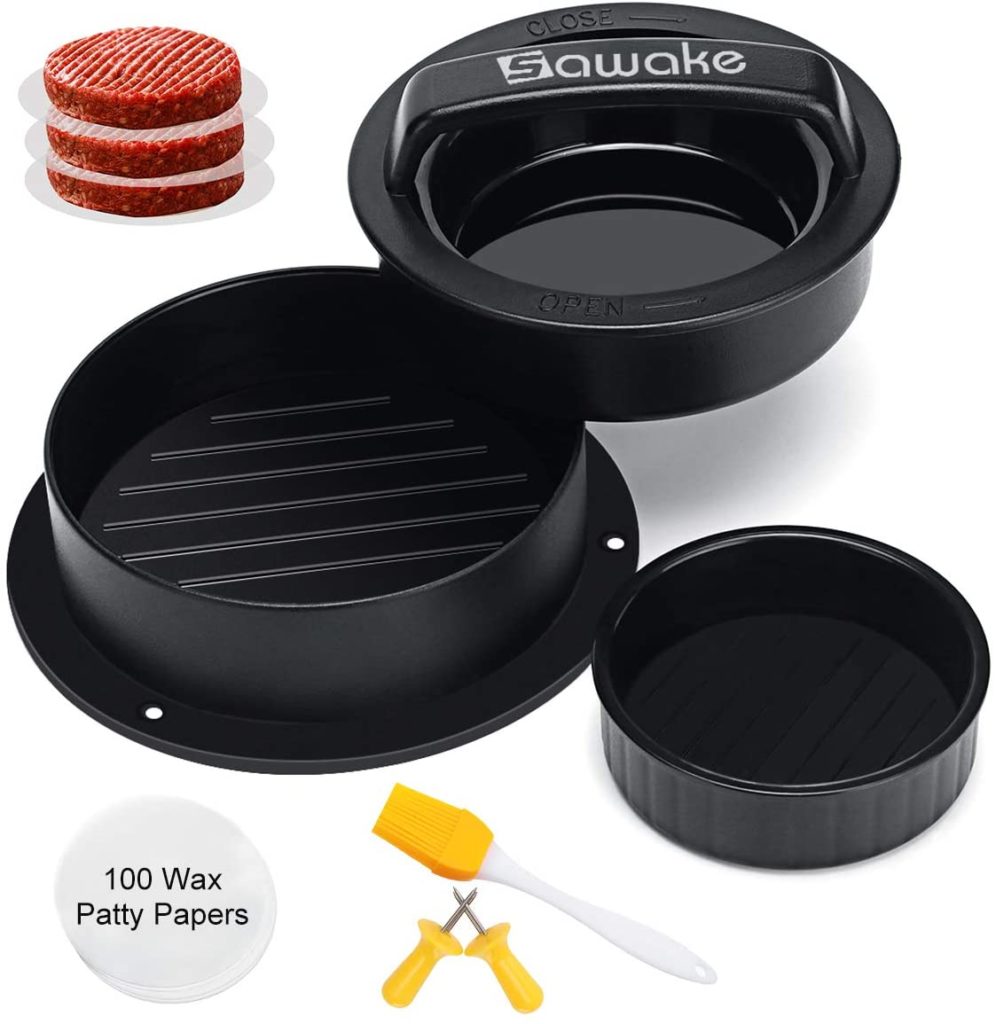 Puedes picar tu la carne o traerla a casa ya picada, pero lo que sin duda vas a necesitar es un molde para hamburguesa para darle la forma compacta y la presión adecuada sin que se deshagan en la sartén dejando un  boñigo irreconocible. Esta en concreto esta de la marca Sawake viene con 100 unidedes de wax papel. Fabricada en plástico alimenticio libre de BPA por ambas partes y revestimiento antiadherente que facilita la extracción de la hamburguesa sin problemas, cuenta con una amplia asa que facilita un óptimo prensado y en el interior de la tapa imprime hendiduras sobre la carne para una rápida preparación.