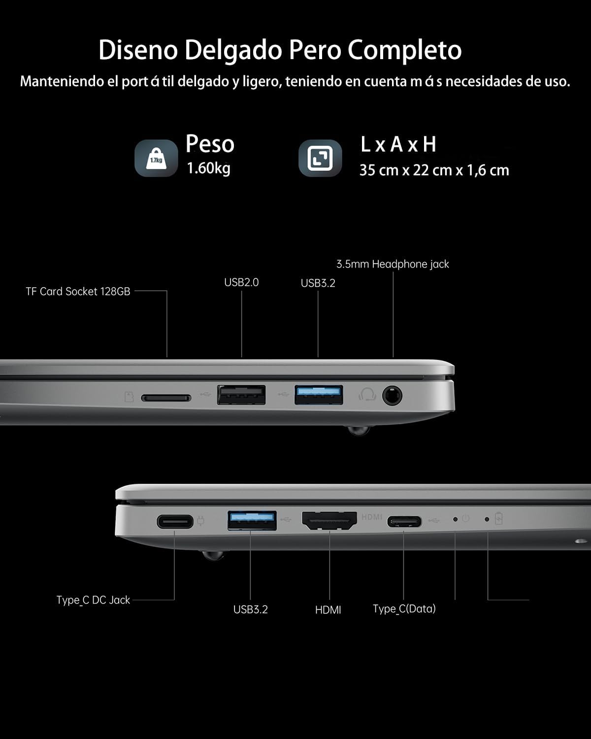 En su interior, el procesador Intel N97, fabricado con tecnología de 7 nm y acompañado de 6 MB de caché, alcanza frecuencias de hasta 3,60 GHz en ráfaga. Gracias a este avance en miniaturización, el rendimiento general de la AX15 mejora hasta un 70 % respecto a la generación anterior, superando con holgura a ultrabooks equipados con Celeron N4000, N5095, N4020, N95 o N100. El resultado es un sistema que responde con rapidez a cambios de aplicación, al abrir múltiples pestañas de navegador o al procesar hojas de cálculo complejas.