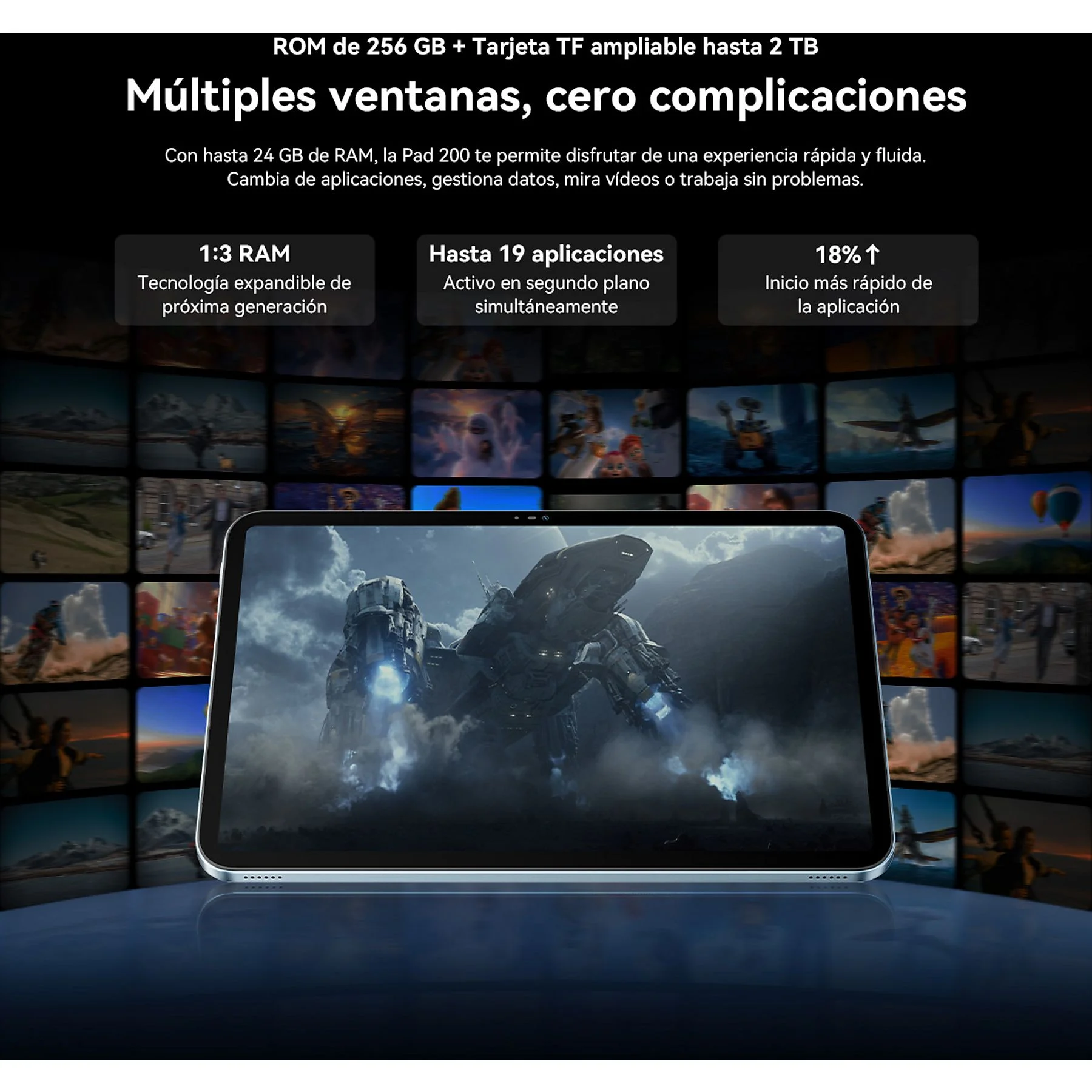 En su interior, el procesador Unisoc Tiger T7280 octa-core lidera el conjunto, ofreciendo un equilibrio perfecto entre eficiencia energética y potencia de cálculo. Pero lo que realmente posiciona a la Oscal Pad 200 en la gama alta de productividad son sus 24 GB de RAM dinámica. Esta configuración permite gestionar la multitarea pesada sin cierres inesperados, manteniendo abiertas decenas de aplicaciones simultáneamente. En cuanto al almacenamiento, los 128 GB de base son solo el principio. Gracias a su ranura para tarjetas microSD, puedes ampliar el espacio hasta los 2 TB, permitiéndote llevar contigo bibliotecas completas de recursos multimedia, archivos RAW de alta resolución o proyectos de ingeniería sin depender exclusivamente de la nube.