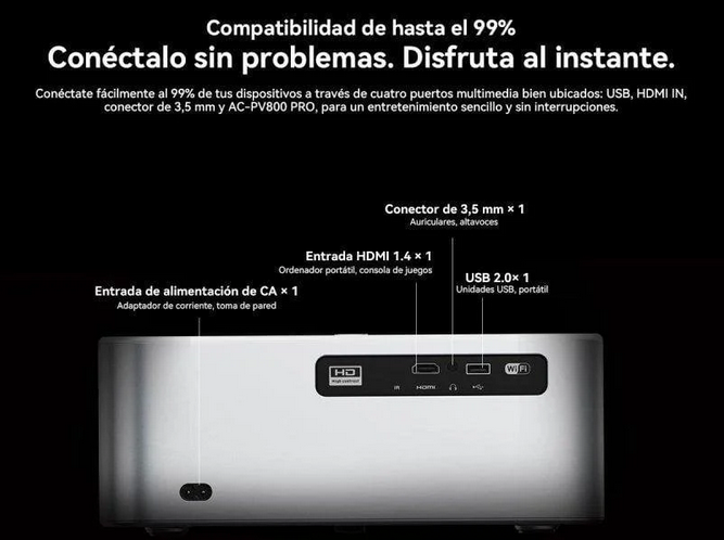 El diseño del PV800 Pro no solo es elegante, sino funcional. Su sistema de refrigeración optimizado mantiene el nivel de ruido por debajo de los 35 dB, asegurando que el zumbido del ventilador nunca compita con el audio de tus películas o presentaciones. Con un procesador Quad-core robusto y puertos HDMI/USB, es capaz de gestionar desde eventos deportivos en vivo hasta flujos de trabajo técnicos con total solvencia.