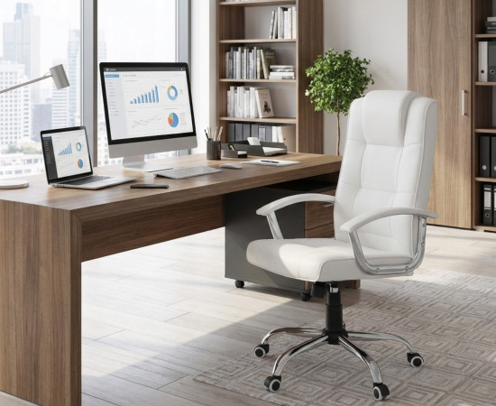 La calidad de los materiales es otro elemento que marca la diferencia. La silla está fabricada en polipiel de alta calidad, un material que combina resistencia con un tacto agradable. Su cuero sintético envuelve al usuario, proporcionando una sensación de confort térmico ideal tanto en invierno como en verano. La ergonomía está cuidadosamente diseñada para ofrecer soporte en las zonas clave del cuerpo, reduciendo la fatiga y favoreciendo una postura saludable.
