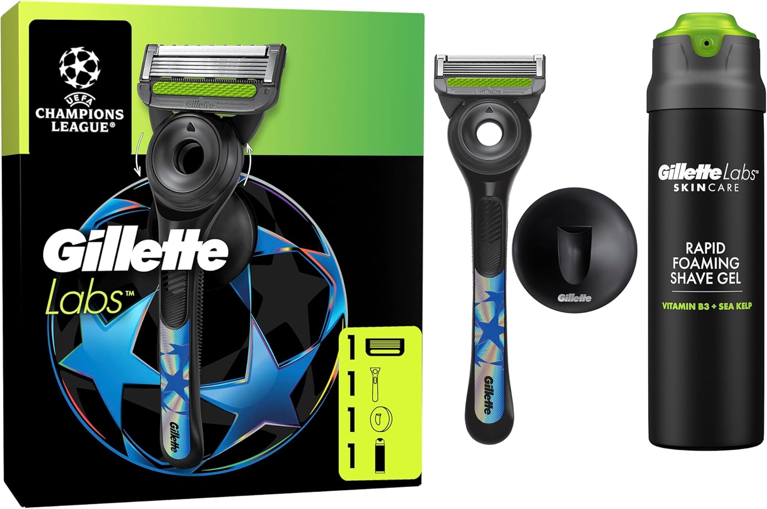 El pack de regalo Gillette Labs Uefa Champions League es la elección perfecta. Este exclusivo set no solo es ideal para regalar en ocasiones especiales, sino que también representa una experiencia premium para cualquier hombre que valore el cuidado de su piel y un afeitado preciso y cómodo.