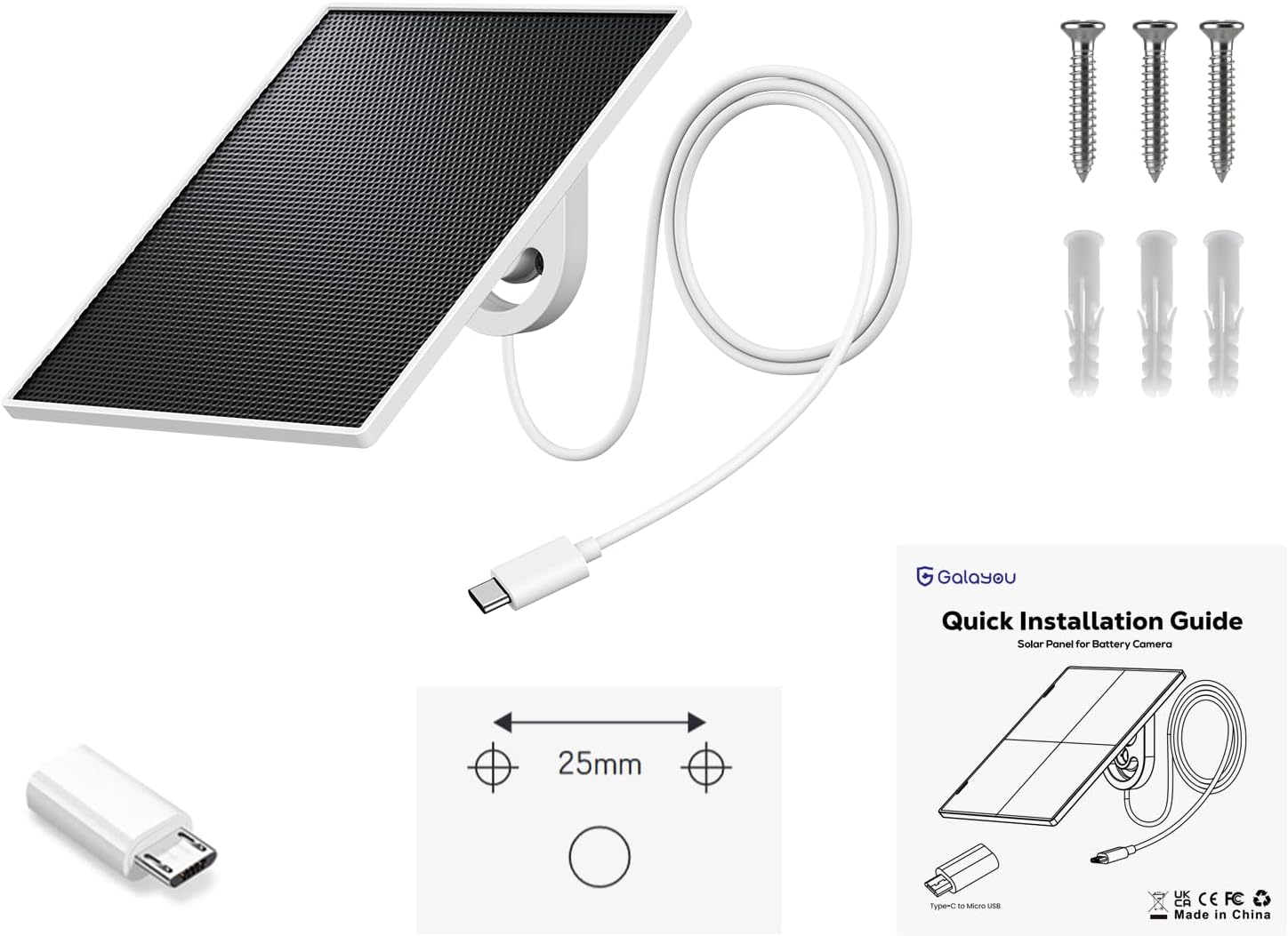 A diferencia de los paneles convencionales, el Galayou LL-03WYT utiliza células de silicio monocristalino. Este material es conocido por su alta tasa de conversión y su capacidad de absorción «súper fuerte» de la radiación solar. Esto significa que el panel puede generar energía incluso en condiciones de luz menos que óptimas, manteniendo la batería de tu cámara siempre en niveles operativos. Al proporcionar una alimentación continua, se evita el desgaste de tener que desmontar la cámara de la pared para cargarla por cable, lo que prolonga la vida útil del equipo y mantiene tu hogar protegido en todo momento.