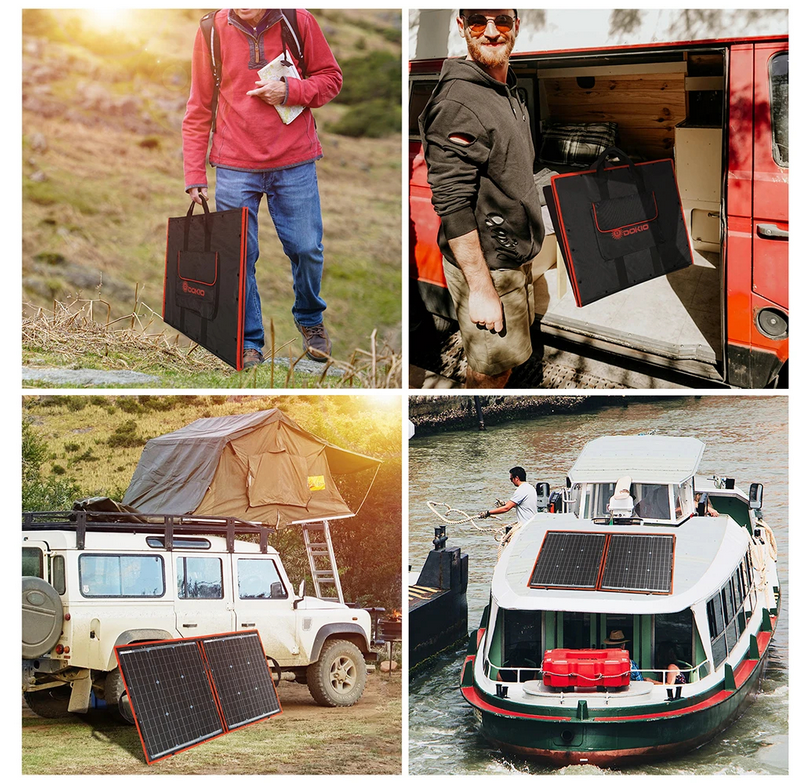 El diseño plegable es uno de los grandes atractivos de este modelo. Con unas dimensiones de 53 x 49 x 2,8 cm cuando está plegado, resulta fácil de transportar y almacenar. Al desplegarse, alcanza un tamaño de 195 x 53 x 0,6 cm, ofreciendo una superficie amplia para captar la energía solar. Su peso neto de 3,3 kg y el peso total del paquete de 4,5 kg lo convierten en un equipo ligero y manejable, ideal para quienes necesitan movilidad sin renunciar a la potencia.