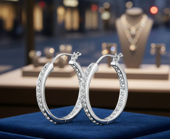 Lo que realmente separa a los pendientes Sommerset de un aro convencional es su exquisito trabajo artesanal. El borde exterior de cada aro está meticulosamente decorado con un delicado pavé de cristales transparentes. Esta técnica de engastado sitúa los cristales tan cerca unos de otros que la superficie parece estar pavimentada con luz pura. El resultado es un efecto óptico fascinante: con cada movimiento de tu rostro, los cristales atrapan y reflejan la luz ambiental, iluminando tus facciones de forma natural. Es un brillo sutil pero magnético que atrae todas las miradas sin resultar excesivo.