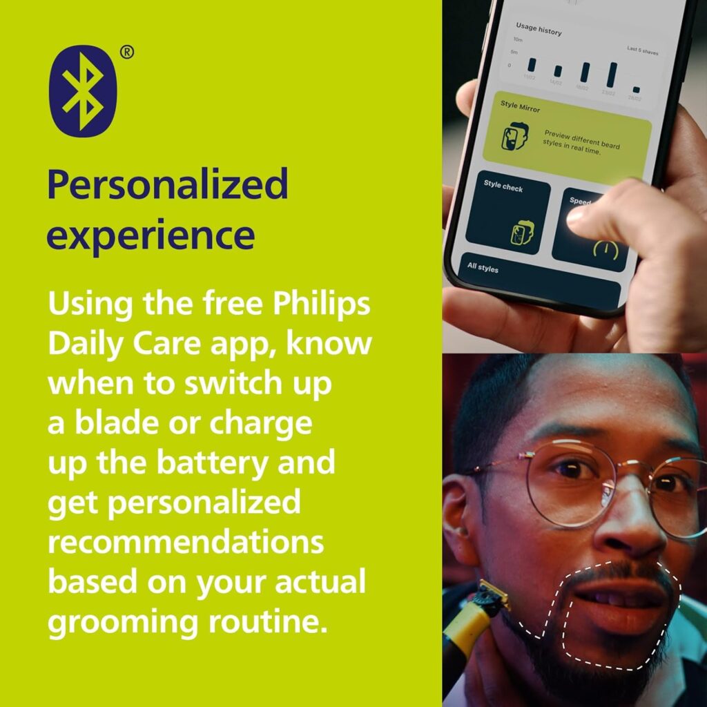 El cuidado corporal también está contemplado. El OneBlade 360 incluye un kit específico con peine de 3 mm y protector de piel, diseñado para trabajar en zonas sensibles con total seguridad. De esta manera, se convierte en una herramienta integral que no solo atiende el rostro, sino también el resto del cuerpo, ofreciendo libertad para recortar y afeitar en cualquier dirección.La experiencia se completa con la aplicación Philips Daily Care, que añade un nivel de personalización único. A través de ella, el usuario recibe recordatorios sobre cuándo cambiar la cuchilla o cargar la batería, además de recomendaciones adaptadas a su rutina de cuidado. Este detalle convierte al OneBlade 360 en un dispositivo inteligente, capaz de integrarse en el día a día de forma práctica y eficiente.