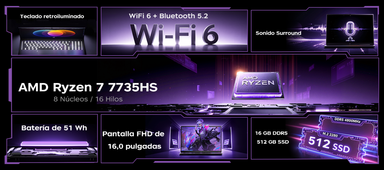 El rendimiento de este dispositivo está impulsado por el procesador AMD Ryzen 7-H255. Con una frecuencia base de 3.8 GHz que escala hasta los 4.9 GHz, este chip está diseñado para llevar el rendimiento al límite. No se trata solo de velocidad, sino de eficiencia en la ejecución de procesos complejos. Para los entusiastas del contenido visual y los videojuegos, la GPU integrada Radeon 780M (con una frecuencia de 2.4 GHz) marca la diferencia. Esta gráfica ofrece una experiencia de juego fluida en títulos modernos, optimizando el consumo energético sin sacrificar los FPS. Es, en esencia, potencia diseñada para no detenerse ante nada.