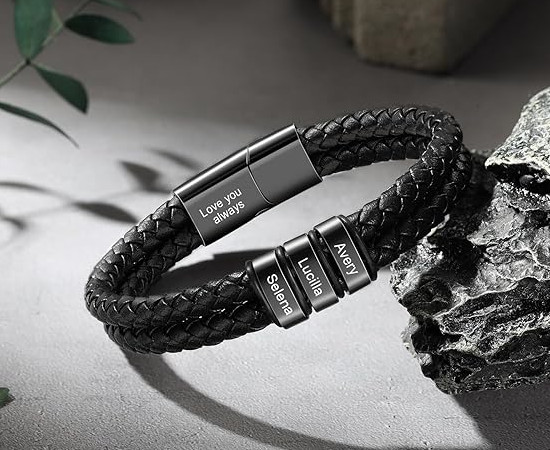 Los accesorios han dejado de ser meros complementos para convertirse en declaraciones de identidad. Esta pulsera personalizable para hombre en cuero trenzado doble representa la evolución de la joyería personalizada, fusionando una estética urbana y contemporánea con la carga emocional de los recuerdos más valiosos. Construida con un diseño de cuero trenzado doble de PU, ofrece una textura rica y una resistencia superior al desgaste diario. El cuero se entrelaza para dar soporte a una serie de cuentas de acero inoxidable negro (personalizables de 1 a 5 unidades) y una placa central grabada que corona el diseño.El acabado en negro mate es una elección estratégica de estilo. A diferencia de los acabados brillantes tradicionales, el mate proyecta una imagen de masculinidad moderna y sobria. Pero lo que realmente eleva a esta pulsera es su capacidad de personalización única. Gracias a su sistema de cuentas intercambiables y su placa central, el usuario puede crear una pieza irrepetible: