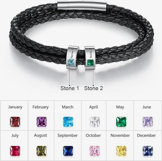 Fabricada con cuero de alta calidad y adornada con cuentas de acero inoxidable personalizadas con nombres, esta pulsera es ideal para hombres de todas las edades que buscan un accesorio resistente, elegante y con personalidad. Su diseño minimalista y la superficie pulida de las letras hacen que cada pieza sea exclusiva, aportando un aire sofisticado y atemporal. El cordón de cuero genuino ofrece suavidad al tacto y una resistencia superior, lo que la convierte en una opción perfecta para el uso diario. A diferencia de otros accesorios, el cuero conserva su forma y textura con el paso del tiempo, adaptándose a la muñeca de manera cómoda y natural.