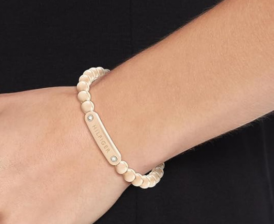 Cuando se trata de accesorios que logran el equilibrio perfecto entre la elegancia clásica y el toque moderno «preppy», pocas marcas lo hacen tan bien como Tommy Hilfiger Jewelry. La estética de este brazalete redefine el concepto tradicional de las perlas. En lugar de la clásica perla orgánica, Tommy Hilfiger apuesta por perlas metálicas de 6 mm, creando un look chic, industrial y profundamente femenino. Lo mejor es su versatilidad: la colección ofrece una gama de colores que permite desde un estilo monocromático hasta el layering (superposición de varias pulseras), adaptándose a cualquier atuendo, desde un blazer de oficina hasta un vestido de noche.