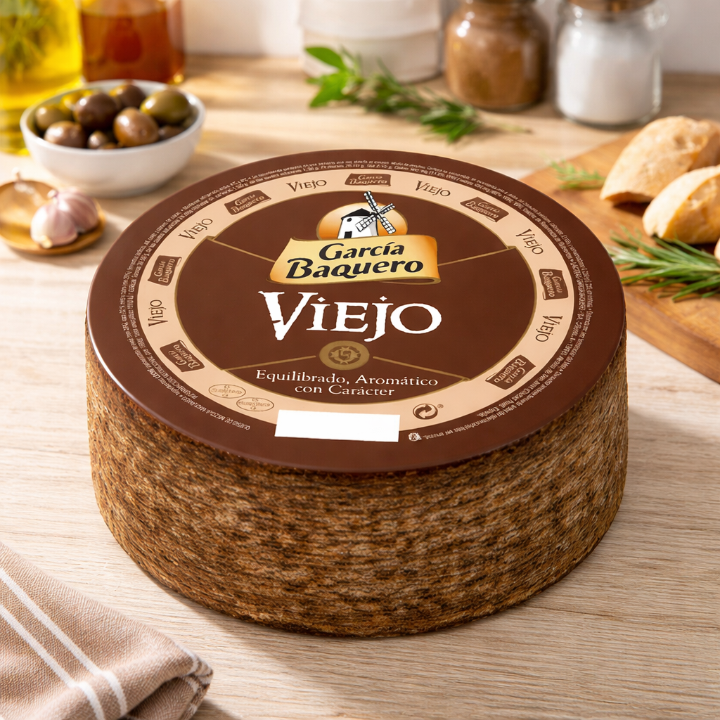 El Queso Viejo García Baquero es uno de los grandes representantes de los quesos curados españoles de mezcla. Elaborado con leche de vaca, oveja y cabra, combina la suavidad de la leche de vaca, la intensidad aromática de la oveja y el punto ligeramente ácido y característico de la cabra. Esta mezcla, junto con una maduración prolongada —que suele rondar los 9 o 10 meses—, da como resultado un queso de sabor profundo, equilibrado y lleno de matices.