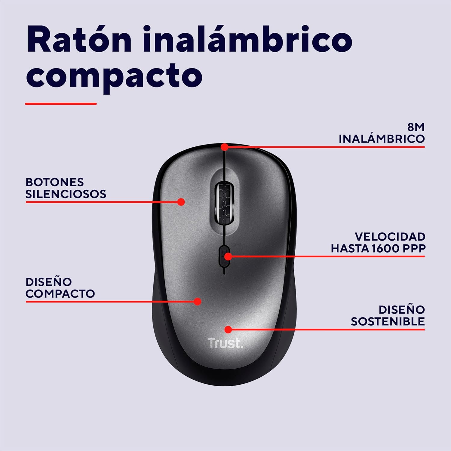 El ratón inalámbrico Trust Yuki es una opción versátil, eficiente y sostenible para quienes buscan mejorar su experiencia diaria frente al ordenador. Diseñado para adaptarse con facilidad a diferentes entornos de trabajo, este ratón destaca por combinar comodidad, precisión y un notable compromiso medioambiental, convirtiéndose en un accesorio imprescindible tanto para oficinas como para el uso doméstico.